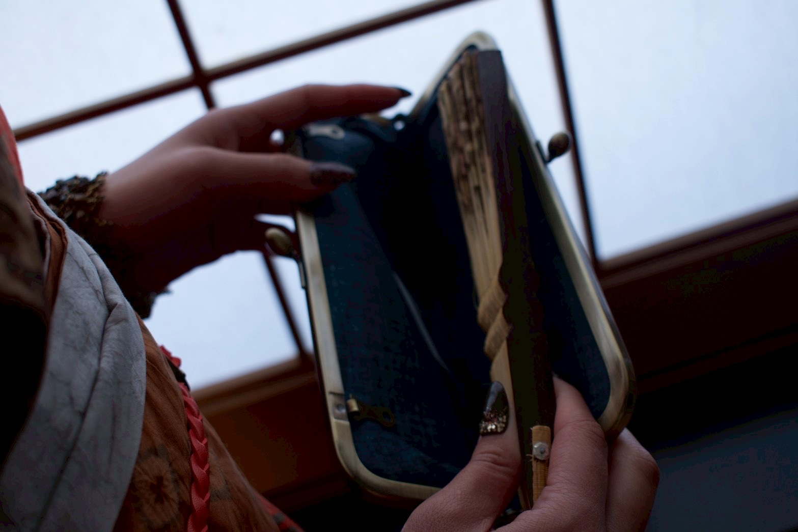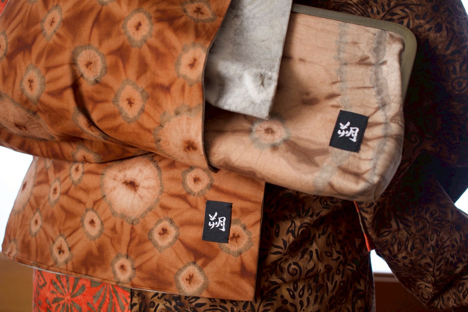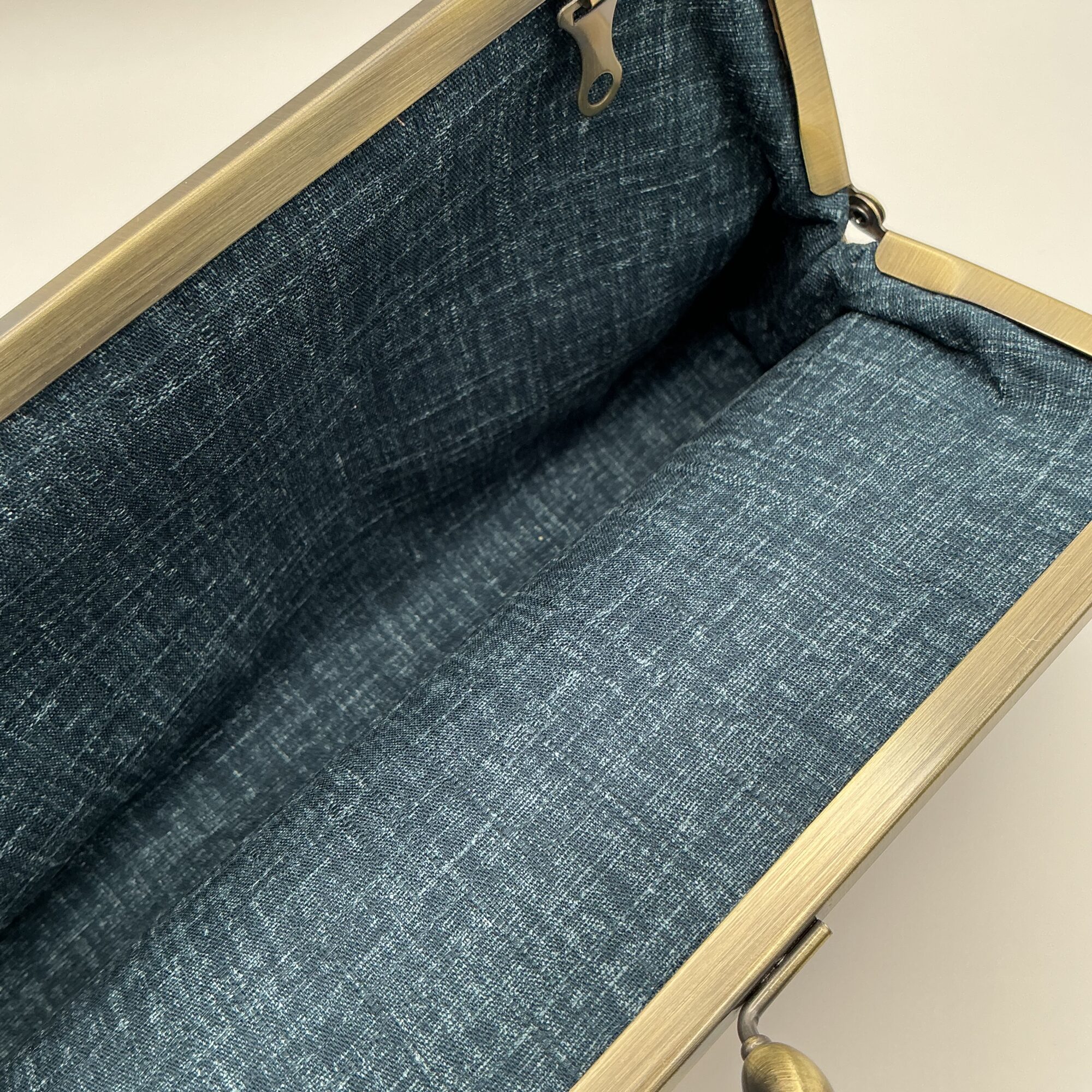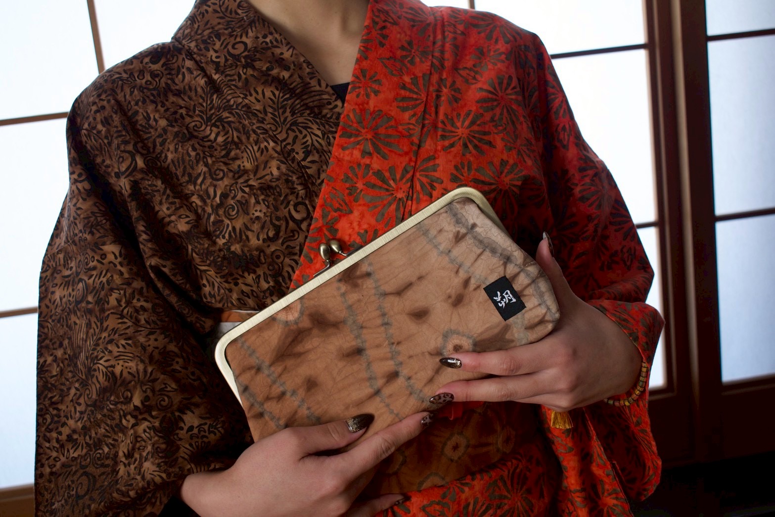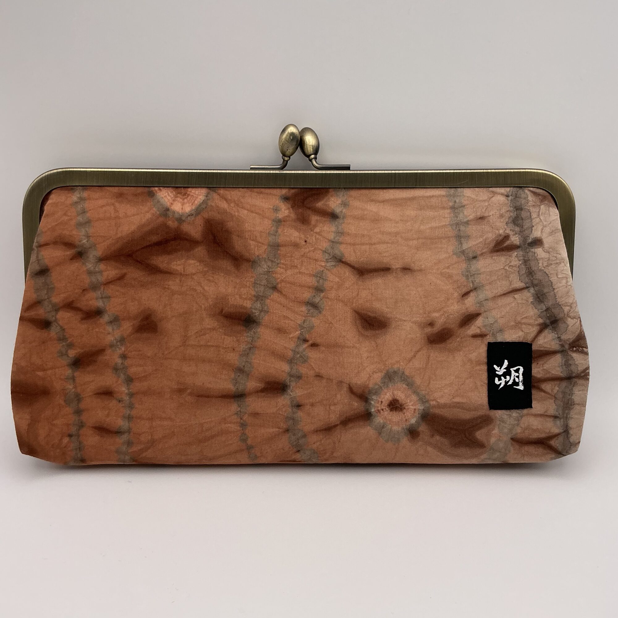 インドネシア・ジョグジャカルタで染められた生地を使用した、がまぐちクラッチバッグ。