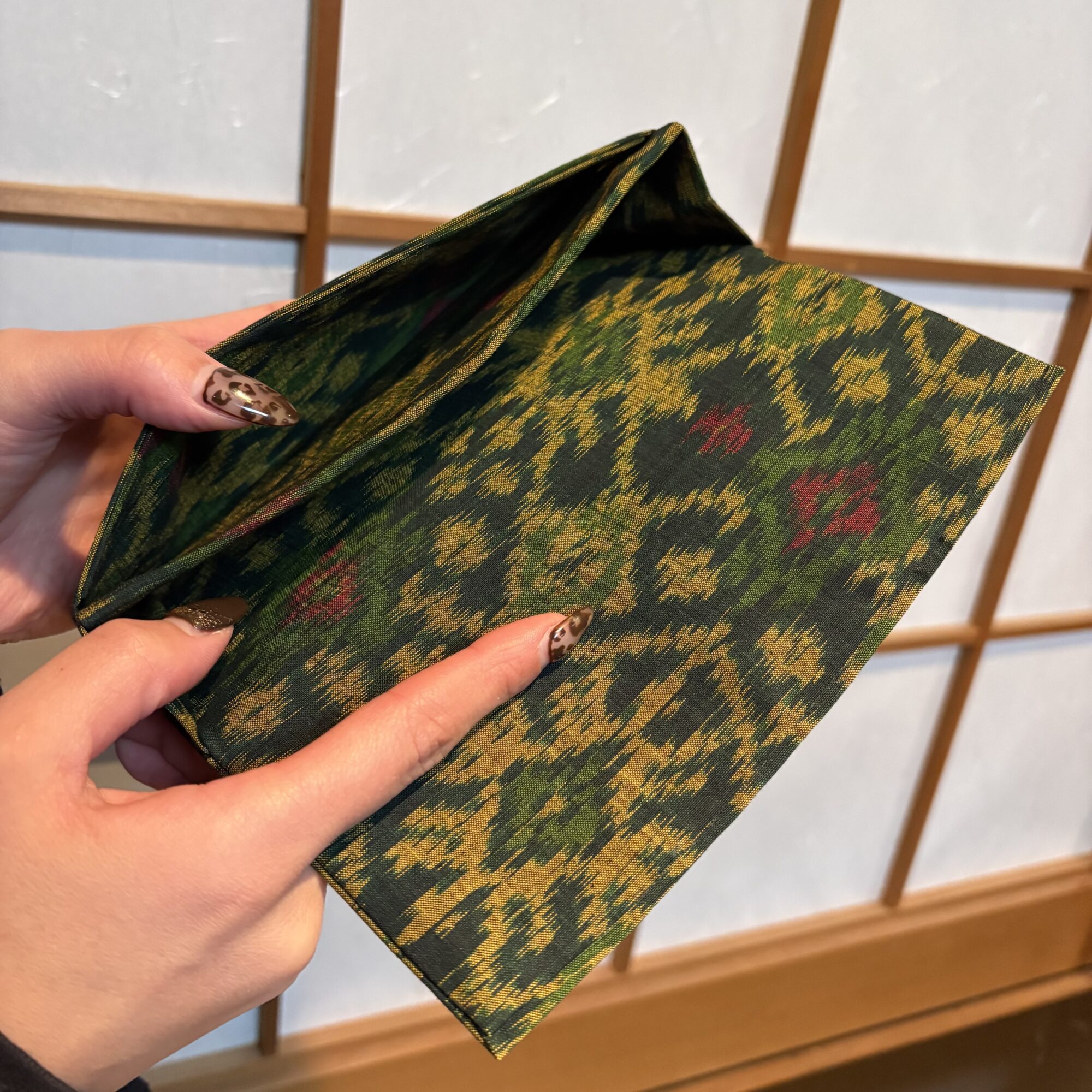 深みのあるグリーンを基調に、織り柄が美しく映える長財布。